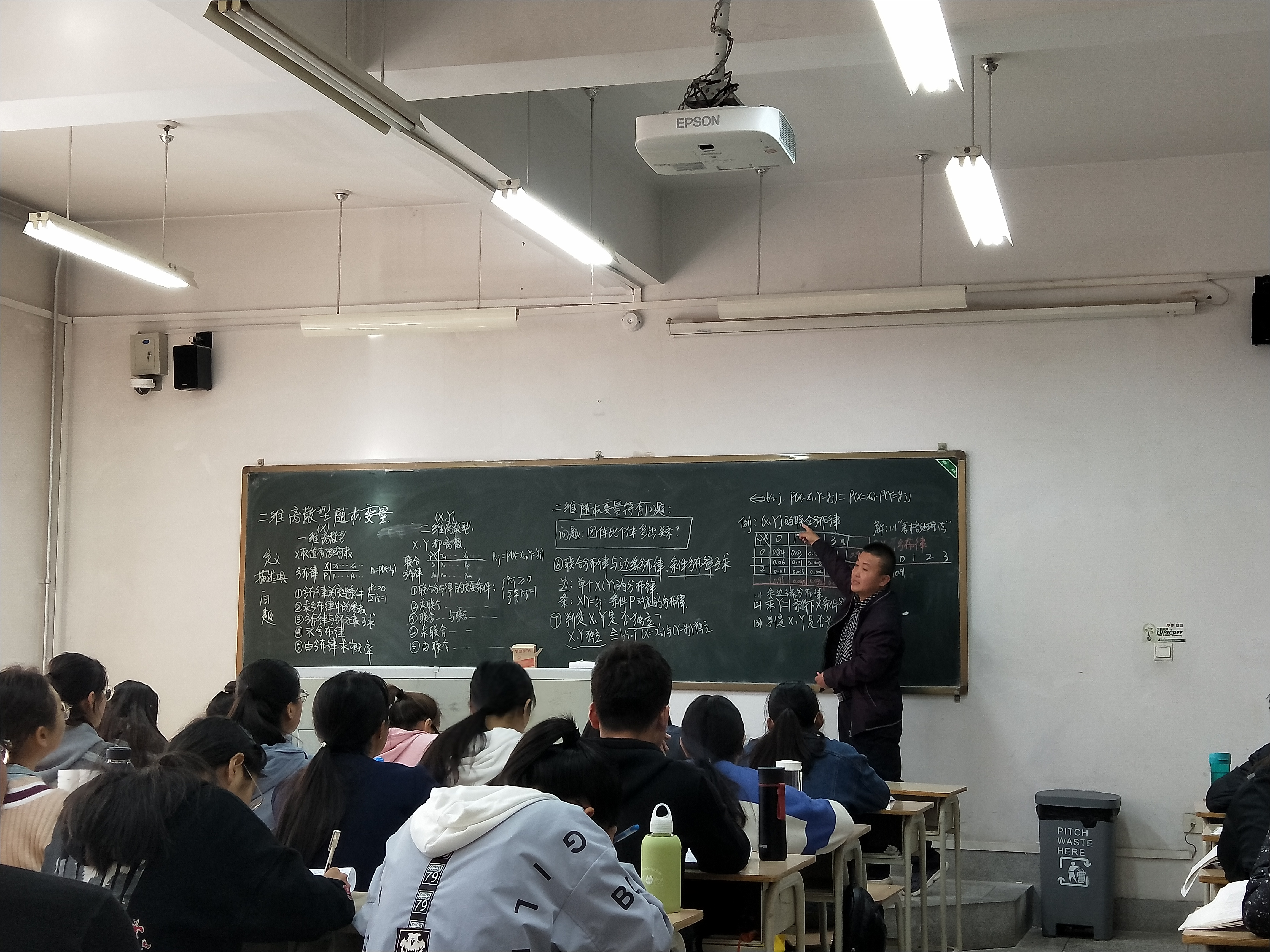 汪军鹏讲授了《概率论与数理统计》中的二维离散型随机变量,他对授课内容非常熟悉,内容详实,重点突出,承前启后。三位青年教师都进行了充分的准备,展现了各自的授课功底和风采。