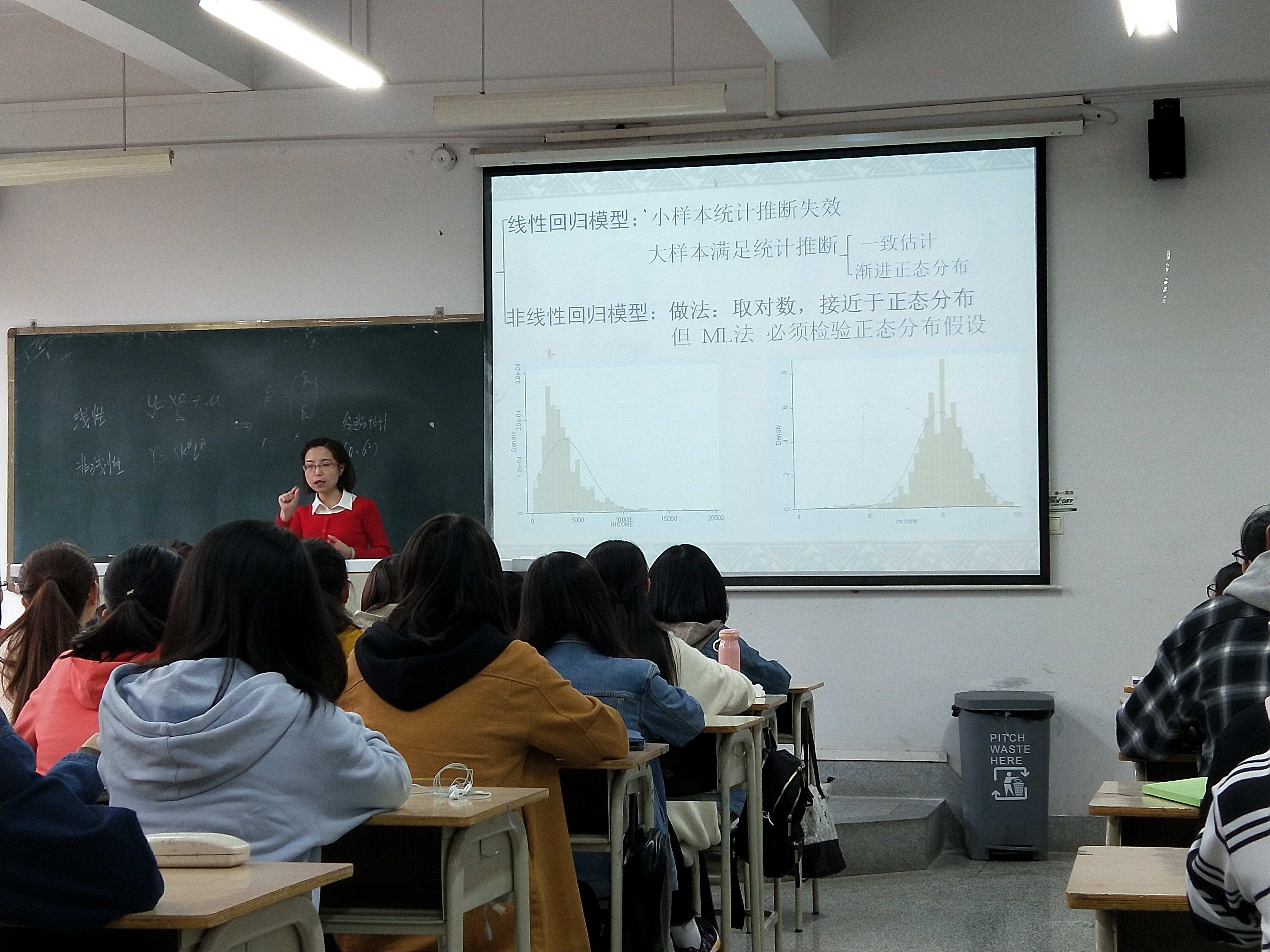 卓玛草讲授了《计量经济学》中对密度函数的非参数估计与核回归,她思路清晰,环节紧凑,重难点突出。