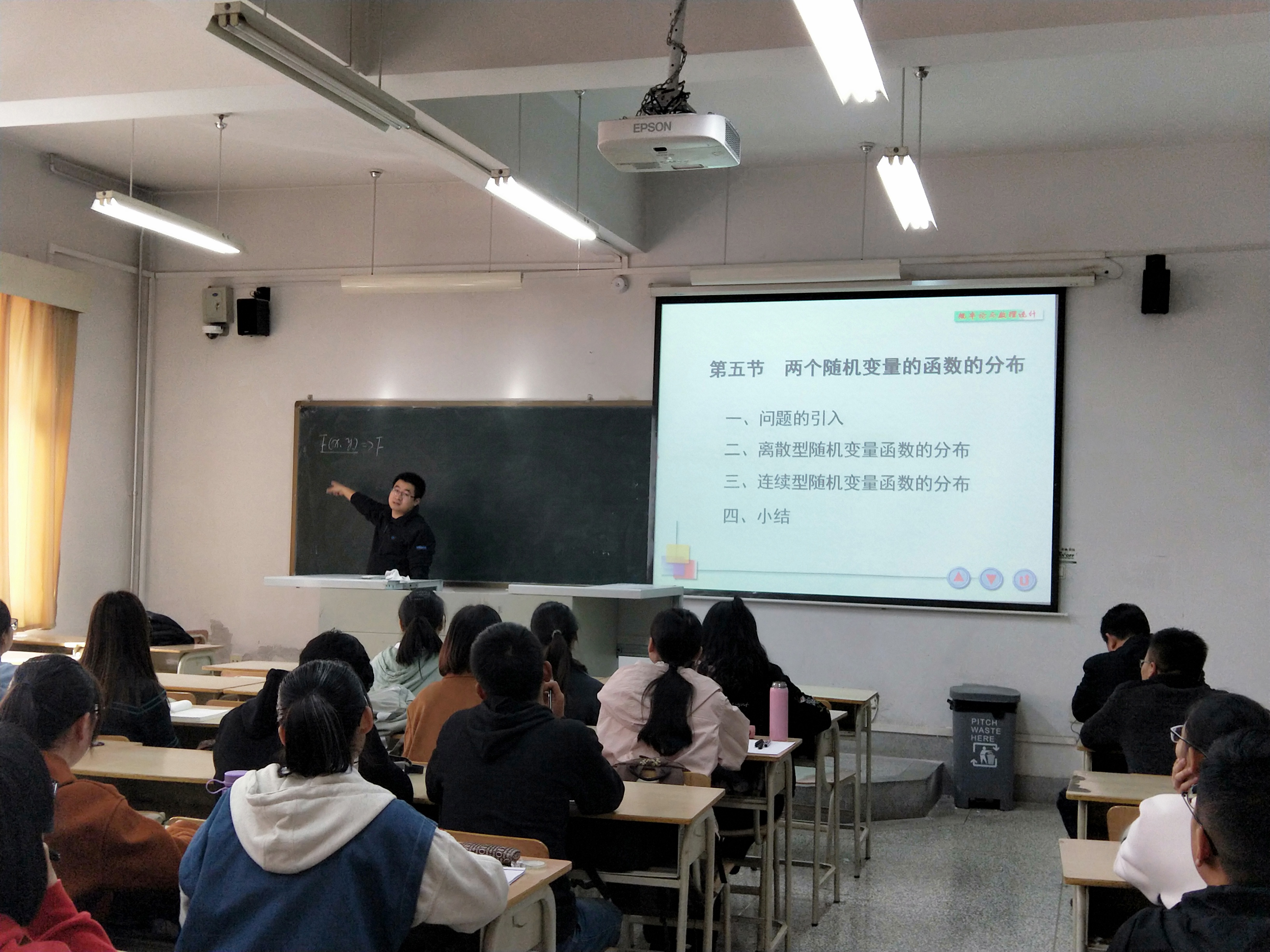 10月25日上午,参赛教师陈国强讲授了《概率论与数理统计》中随机变量的函数分布,他对授课内容非常熟悉,从定义、定理到例题逐一展开,思路清晰,重难点突出。