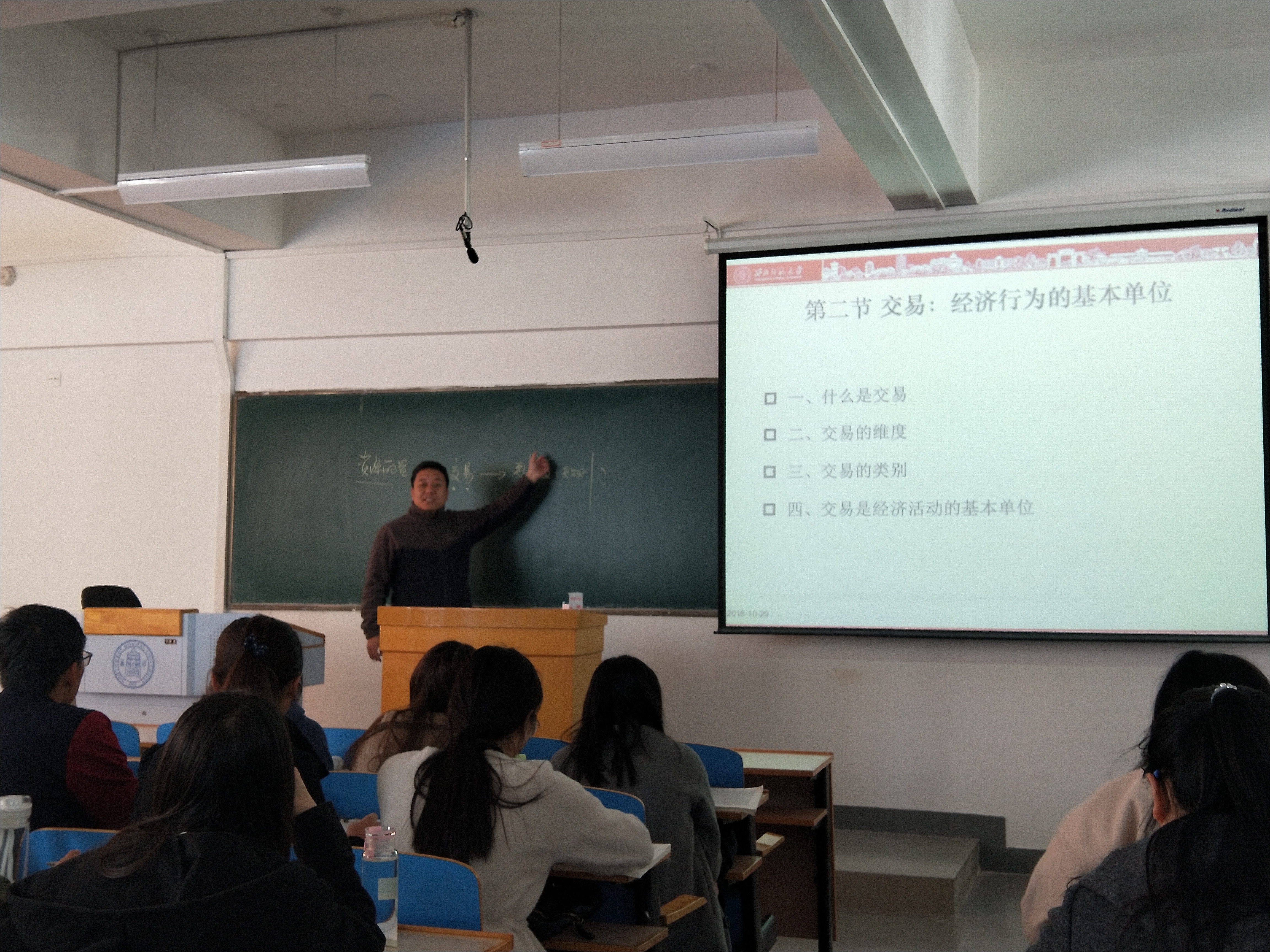 10月29日上午,参赛教师李天建讲授了《制度经济学》中经济行为的基本单位——交易, 包括交易的概念、维度、类别,并对教学重点进行了小结。他教态自然大方,叙述清晰,板书规范美观,受到公司督导老师的一致好评。