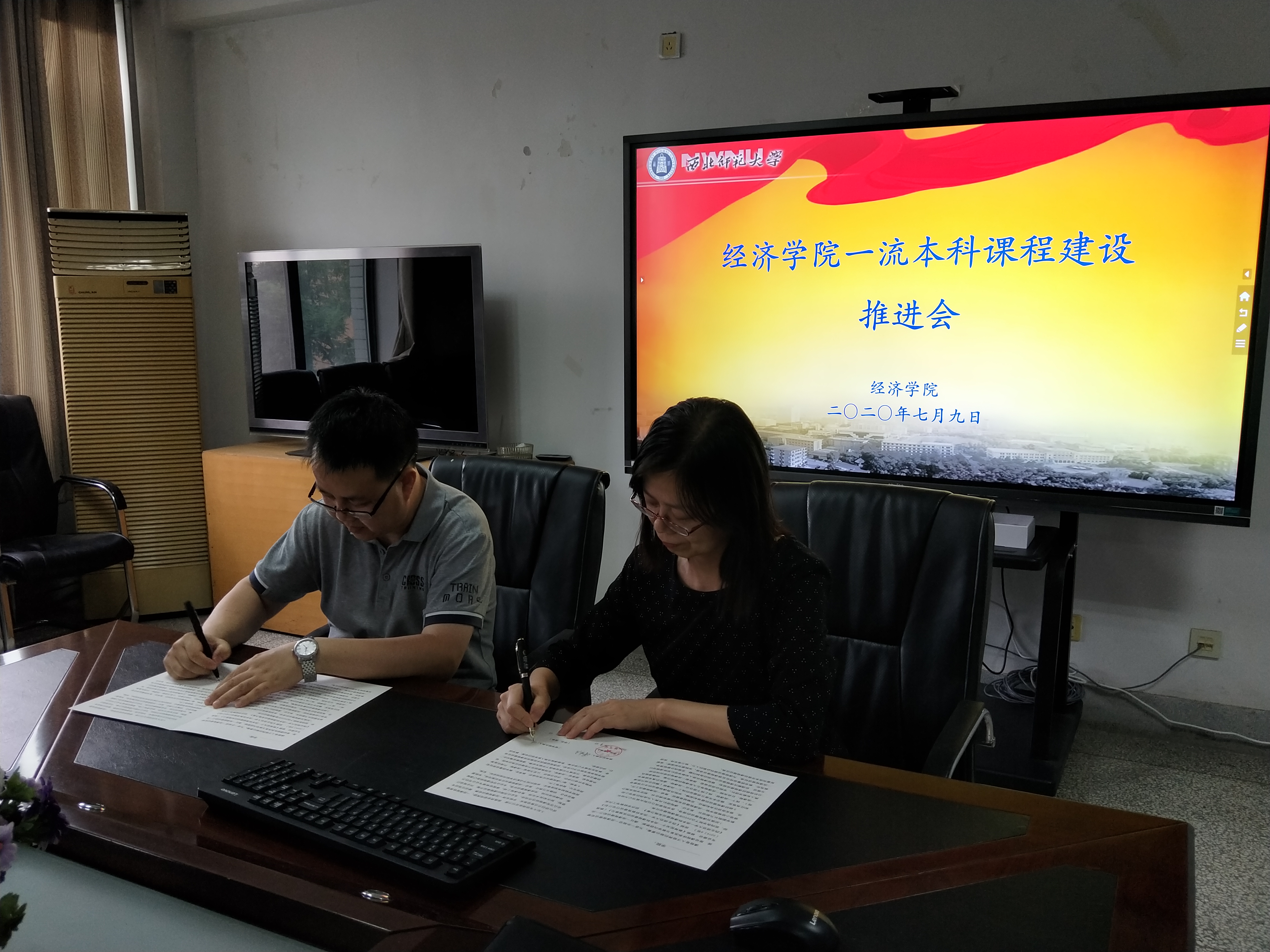 潘竟虎副处长首先详细解读了国家、甘肃省及公司一流本科课程建设的规划和相关政策,强调一流课程是一流专业建设的核心和重要抓手,并介绍了公司五大类一流课程建设进度和优秀案例。杨立勋经理进一步强调了课程建设是专业建设的基础,要求拟建的一流课程项目要安排好建设进度,各专业教研室要组建核心教学团队,做好课程建设,以课程建设为抓手夯实专业建设,提升专业建设水平,公司将给予课程建设团队人力、物力和财力支持。教务处与公司签订了《一流本科课程建设目标责任书》。